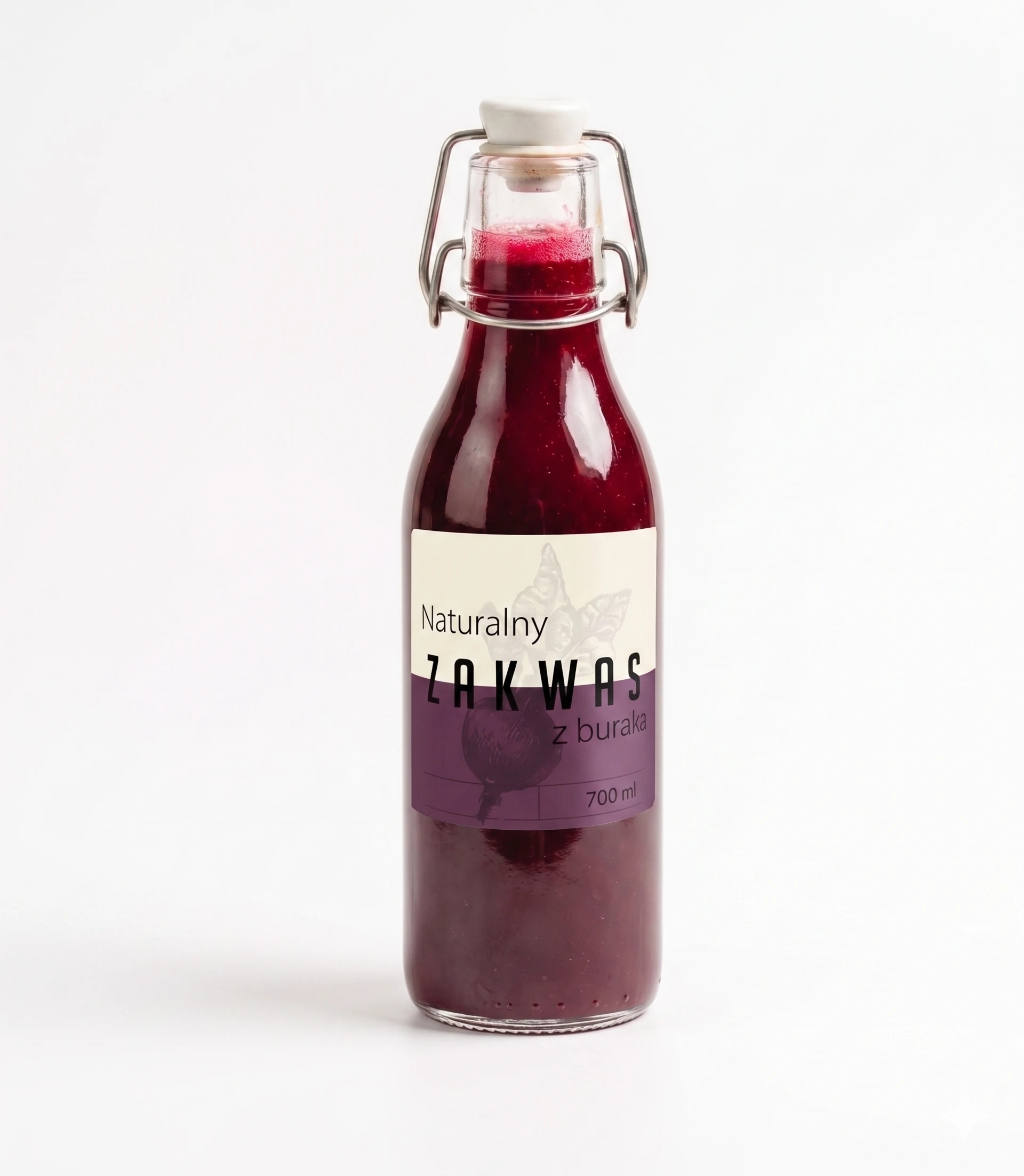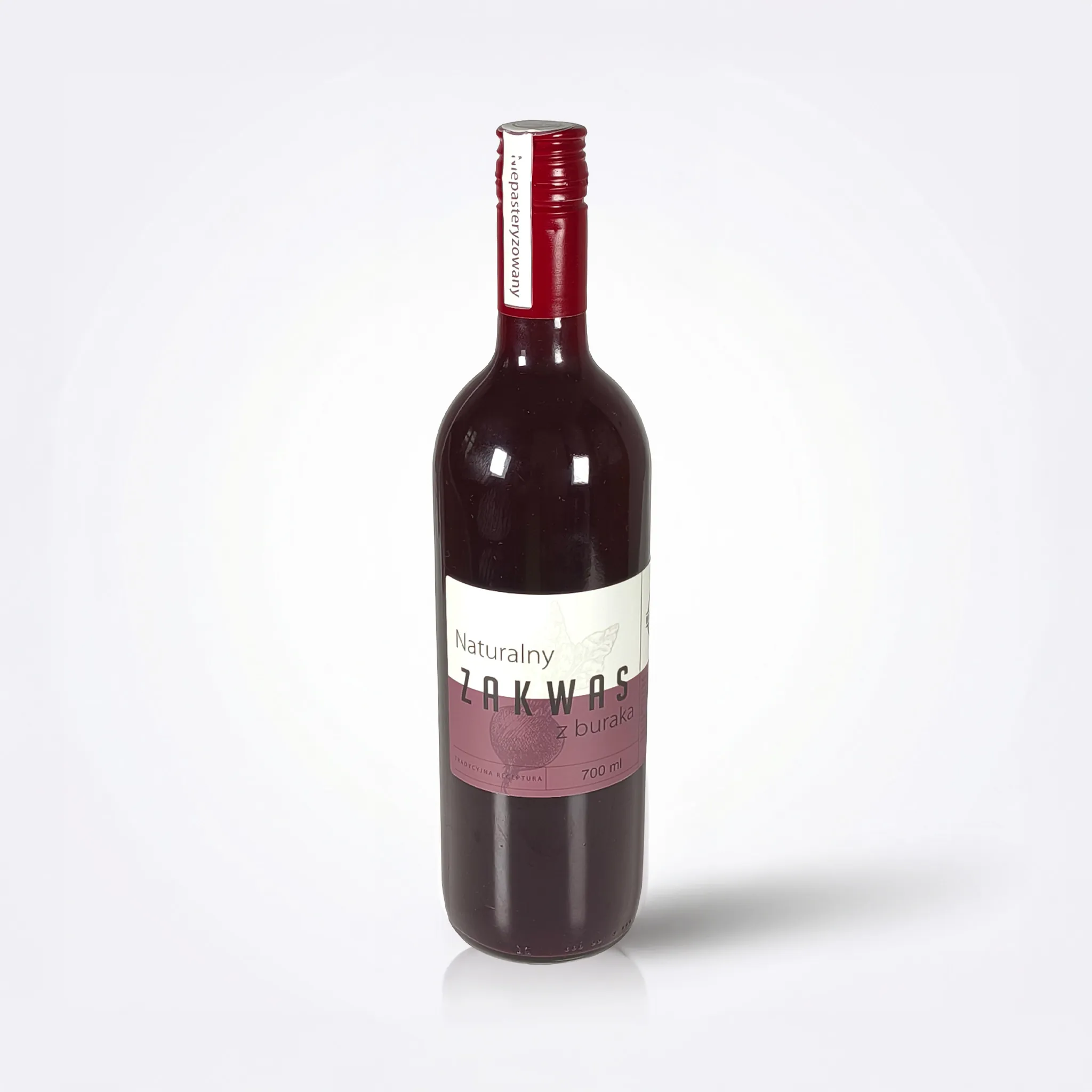 Większość sklepowych zakwasów jest pasteryzowana, co zabija to, co w nich najcenniejsze. Nasz produkt jest surowy i żywy. W szklanej butelce 700ml zamknęliśmy esencję bez konserwantów, ulepszaczy i cukru. To produkt typu clean label – czytasz skład i dokładnie wiesz, co pijesz.