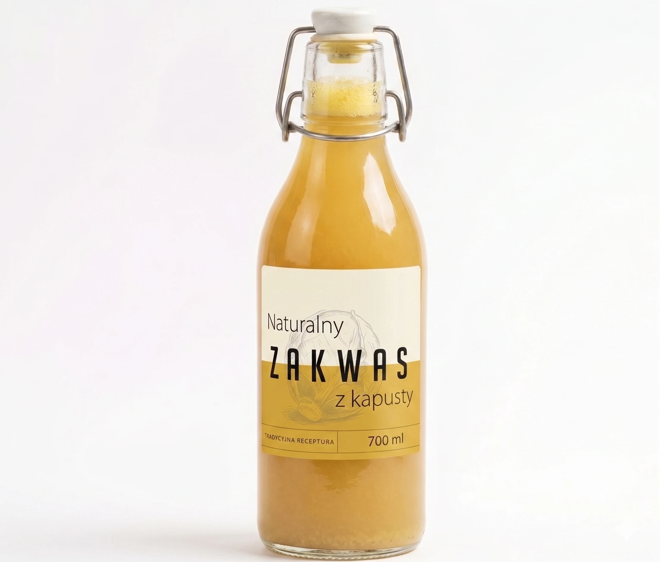 Naturalny zakwas z kapusty kiszonej w przykladowej butelceNaturalny zakwas z kapusty 700 ml